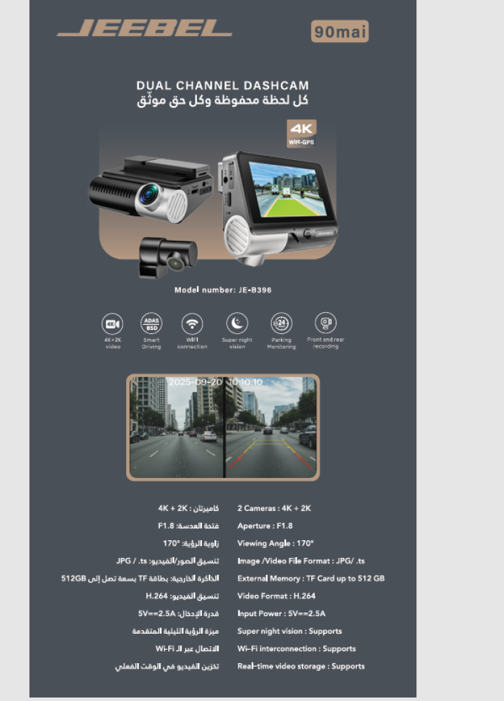 – عدستان متقدمة: أمامية 4K وخلفية 1080P بجودة عالية