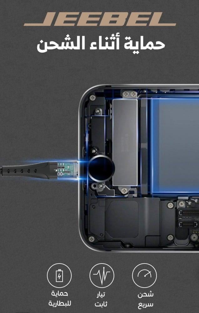 استمتع بتجربة شحن ونقل بيانات عالية الأداء مع كابل Jeebel JE-B311 المصمم خصيصًا لأجهزة Apple والمعتمد رسميًا (MFi).